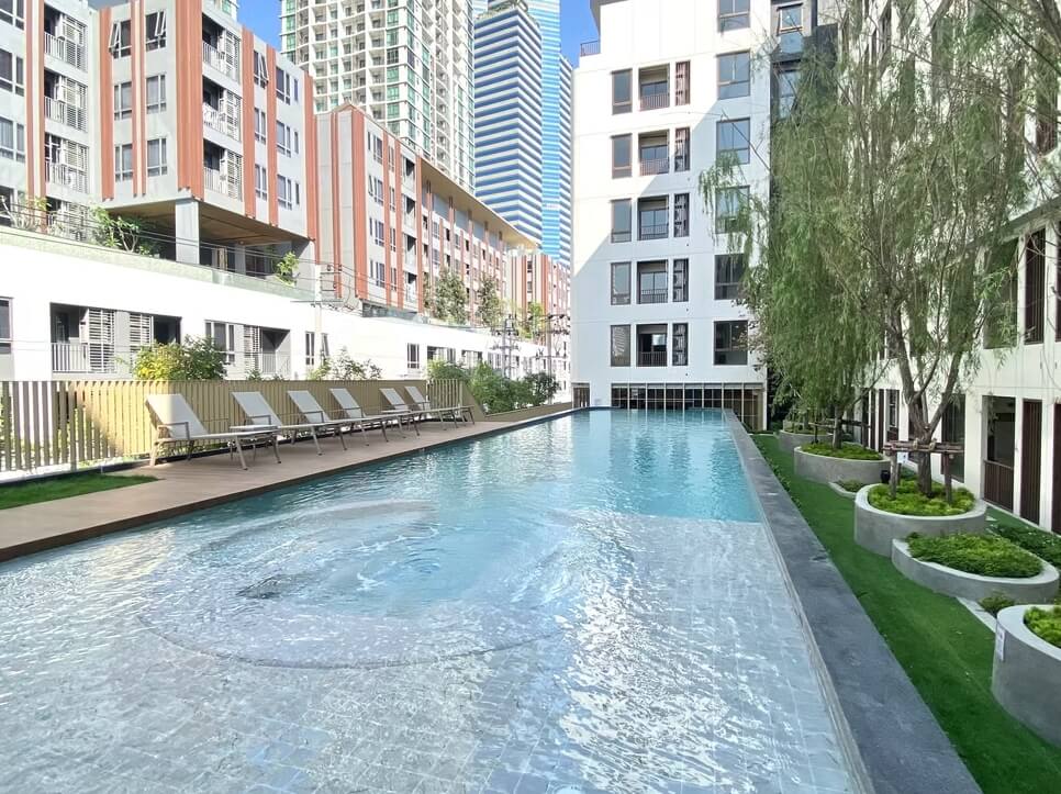 The building has parking for 95 cars, accounting for 34% (if you include double parking, accounting for 40%). There is a shuttle service to and from BTS Phrom Phong.