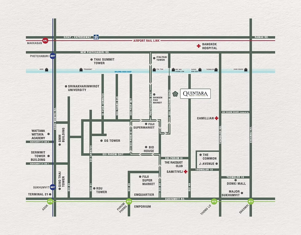 • ที่อยู่ QUINTARA MHy'ZEN PHROM PHONG ซอย ประชัญคดี แขวงคลองตันเหนือ เขตวัฒนา กรุงเทพมหานคร ประเทศไทย