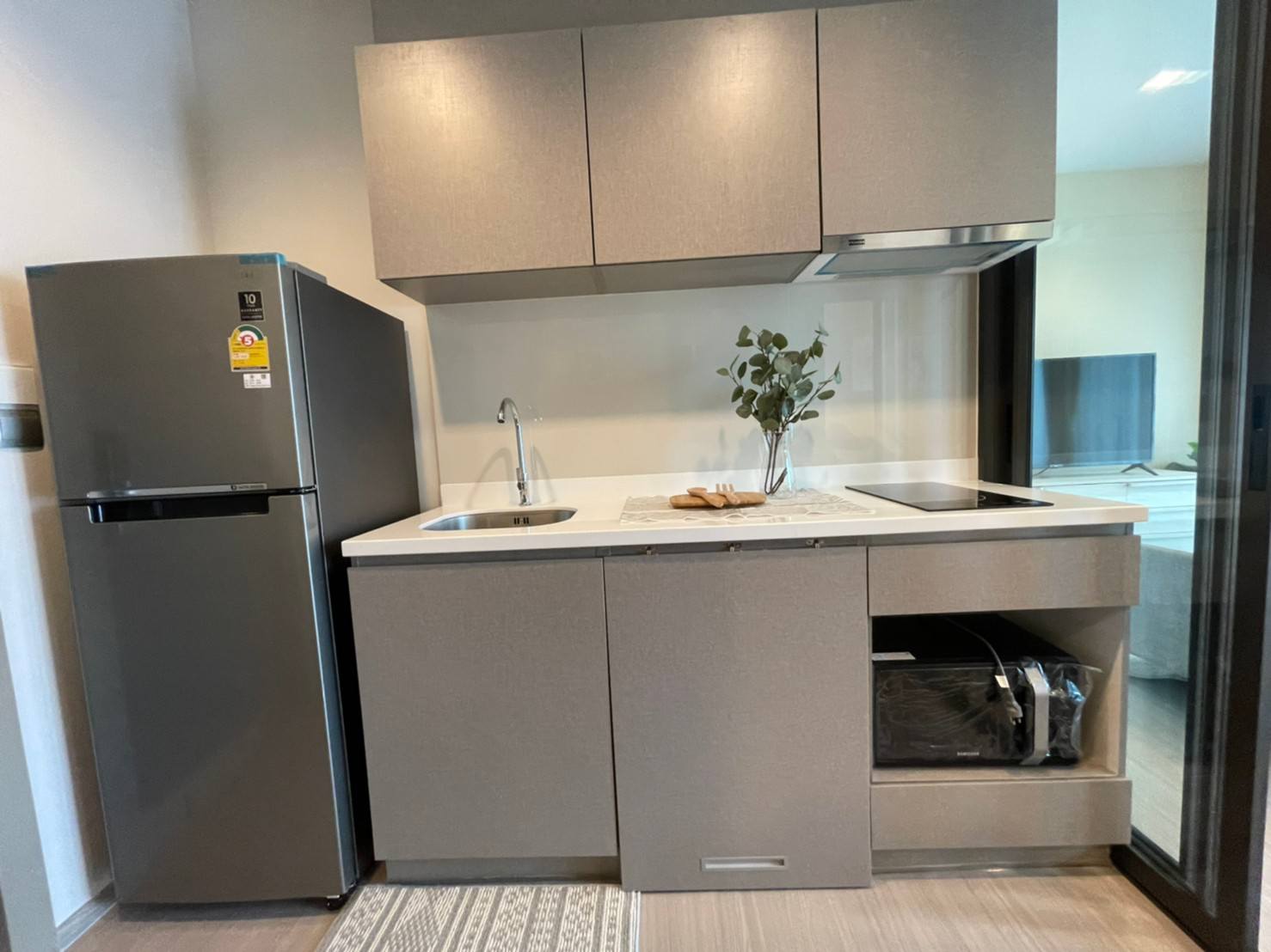• ครัวครบชุด: ชุดครัวบิ้วด์อิน, เตาไฟฟ้า พร้อม เครื่องดูดควัน และซิงค์ล้างจาน